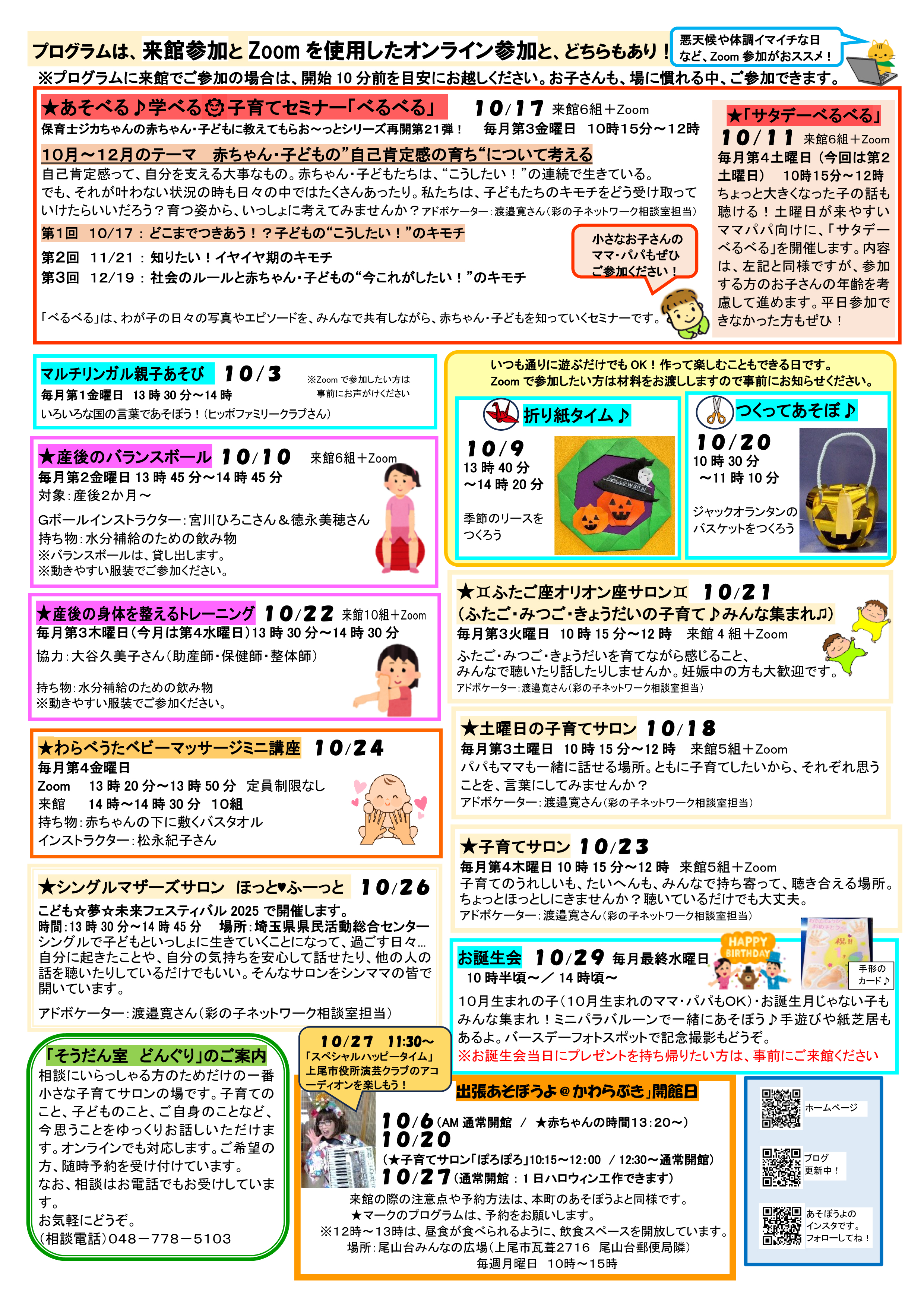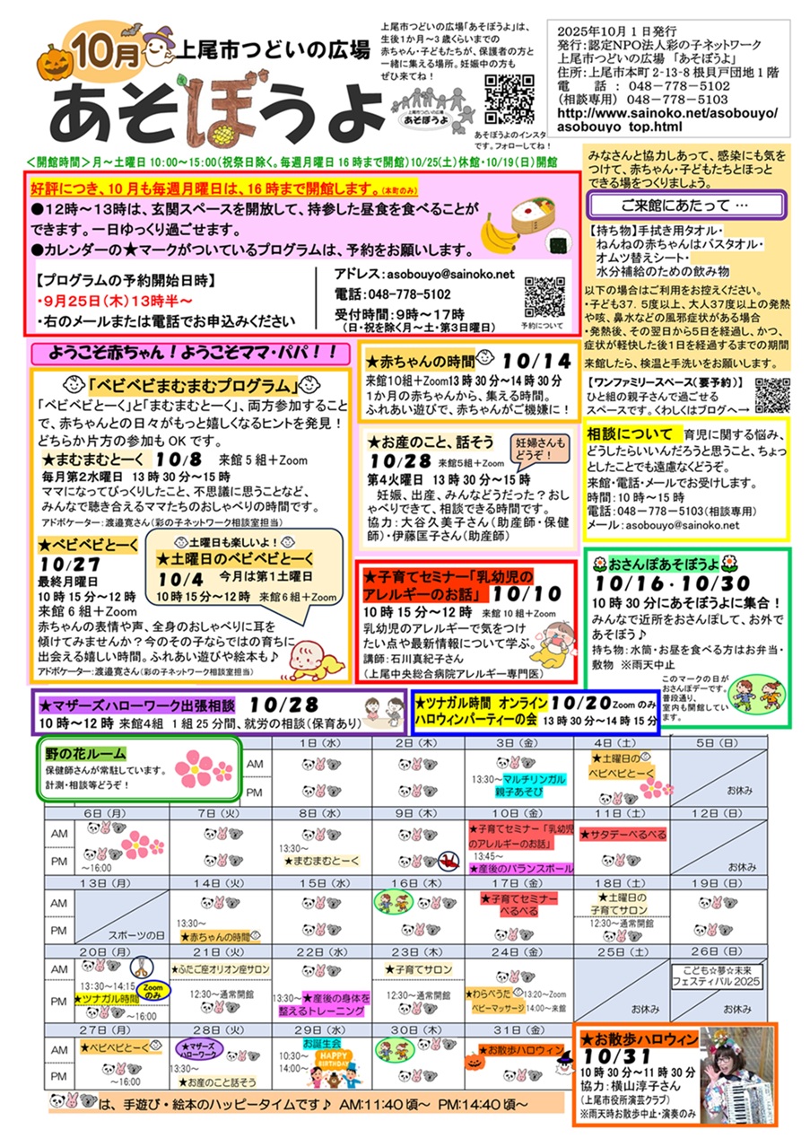 つどいの広場あそぼうよの2025年10月の月間予定をアップしました(2025年9月24日)