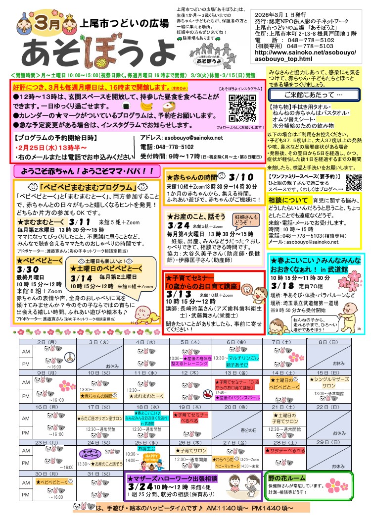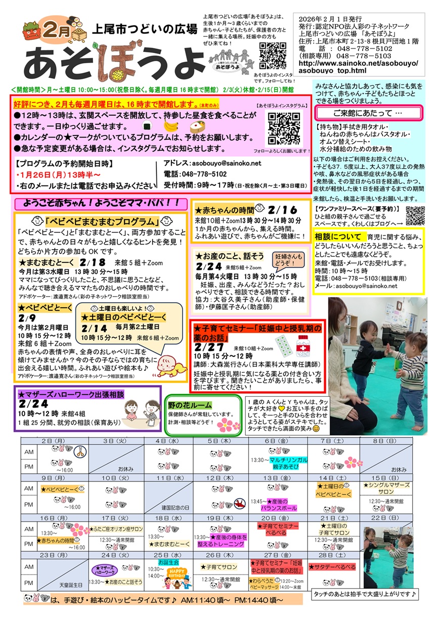 つどいの広場あそぼうよ月間予定