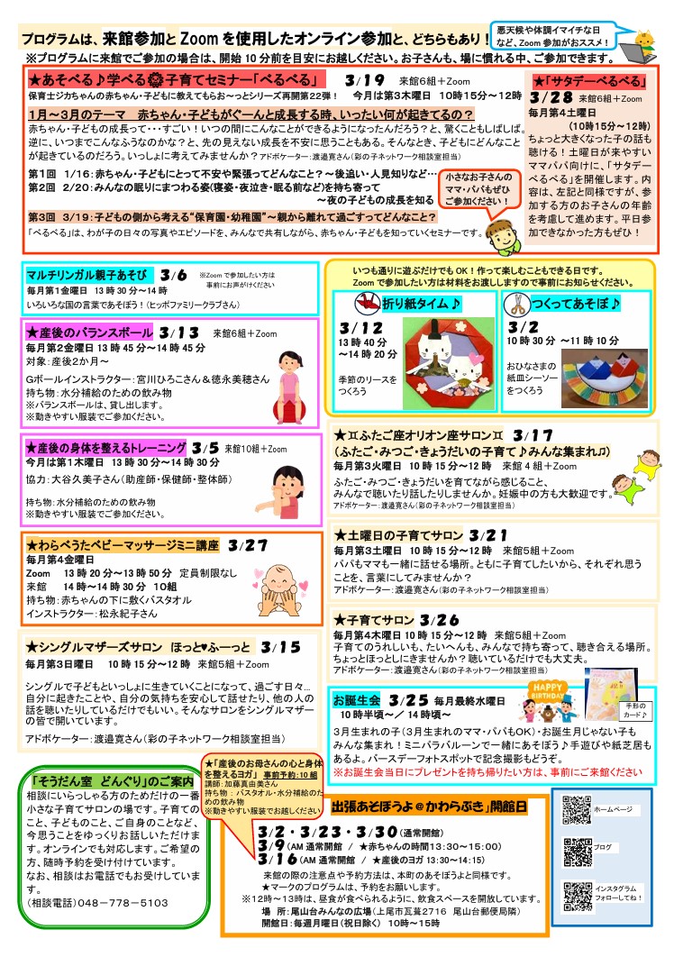 「つどいの広場あそぼうよ」と「出張あそぼうよ@かわらぶき」は2024年4月から開き方が変わります!(2024年3月23日)/a>