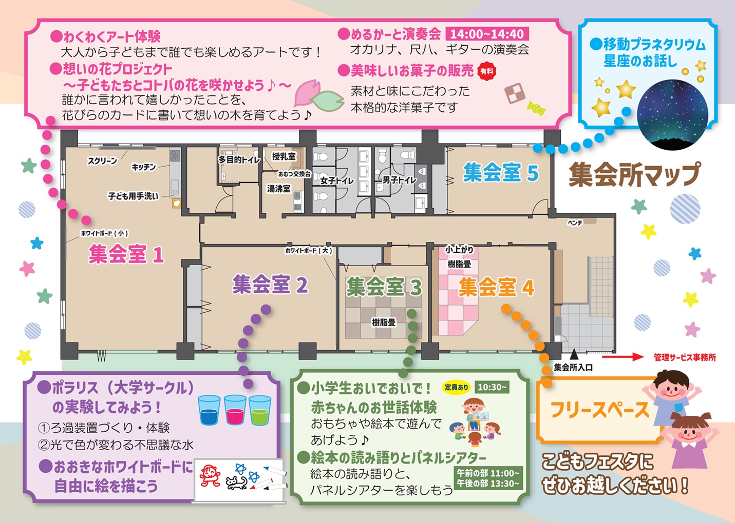 こども☆夢☆未来フェスティバル2025 開催! たくさんのご参加ありがとうございました! 2025年10月26日(日) 場所:埼玉県県民活動総合センター(伊奈町) 今年は、「いきフェス」と、「はたらくフェス」が同時開催!! ![]() くわしくは夢未来HPへ(外部リンク) |